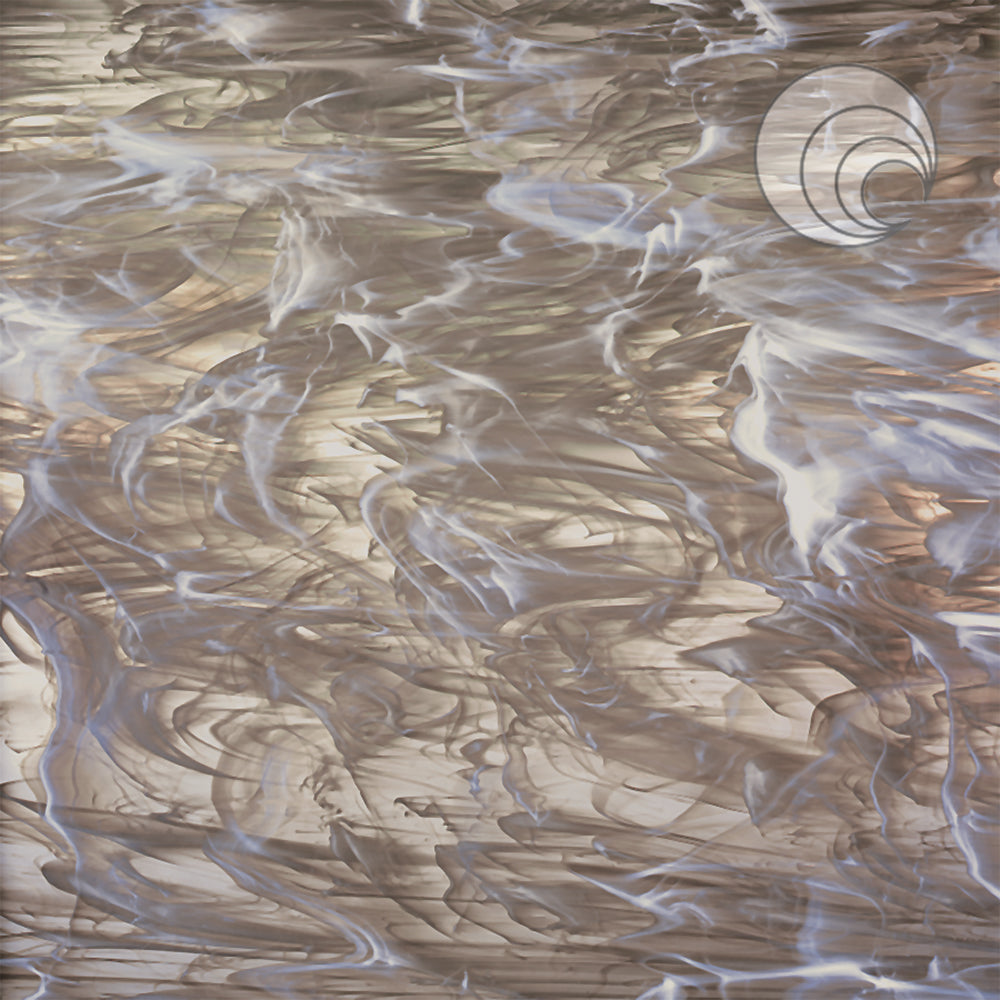 Bronze/White, Wispy Smooth Fusible is a handsome, slightly cool-leaning translucent brown with subtle wisps of opal stirred throughout the sheet.