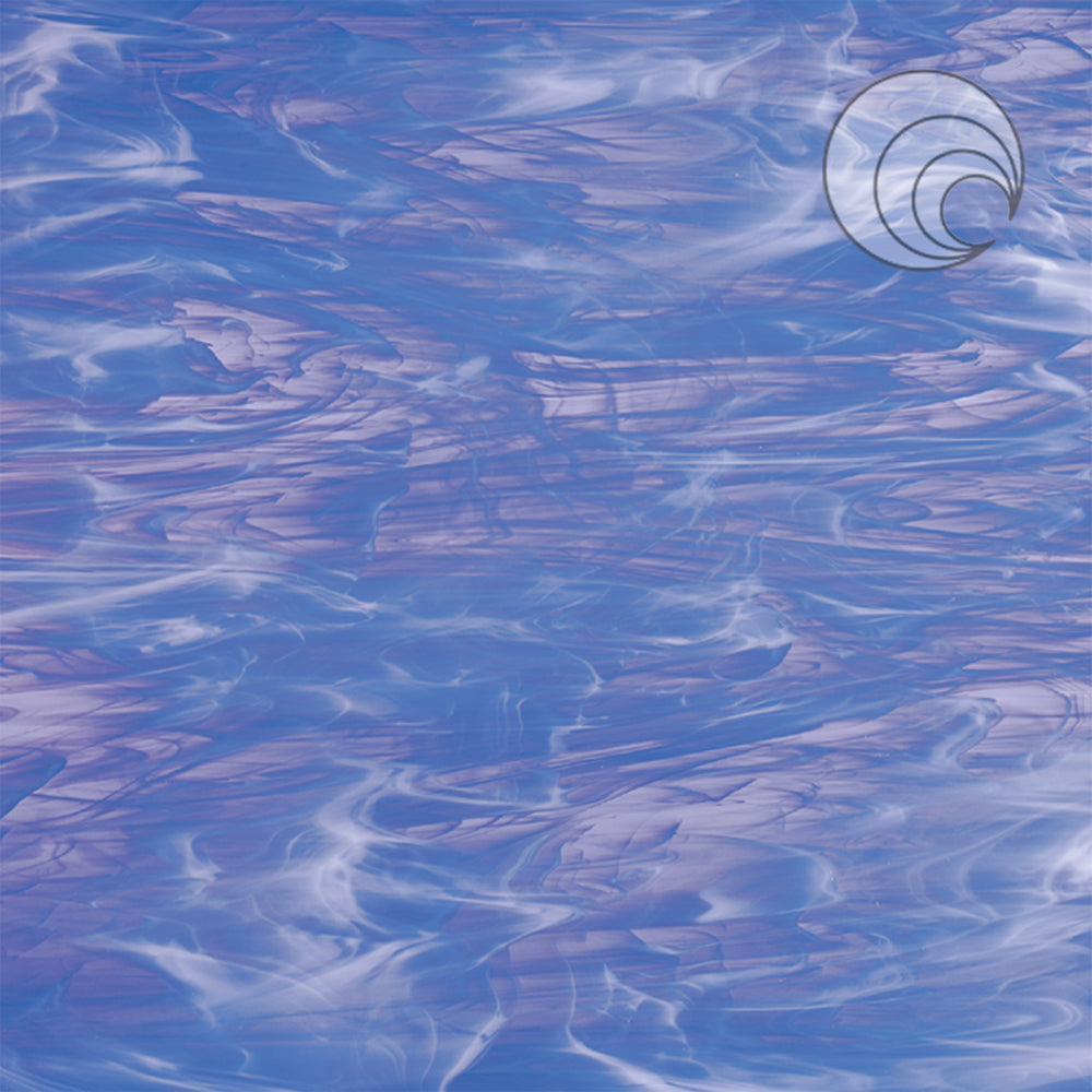 Pale Blue/White, Wispy Smooth Fusible is a soft, yet icy, translucent blue glass with subtle wisps of opal stirred throughout the sheet.