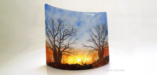 Frit painting in progress (at right) by Scandia Wood..