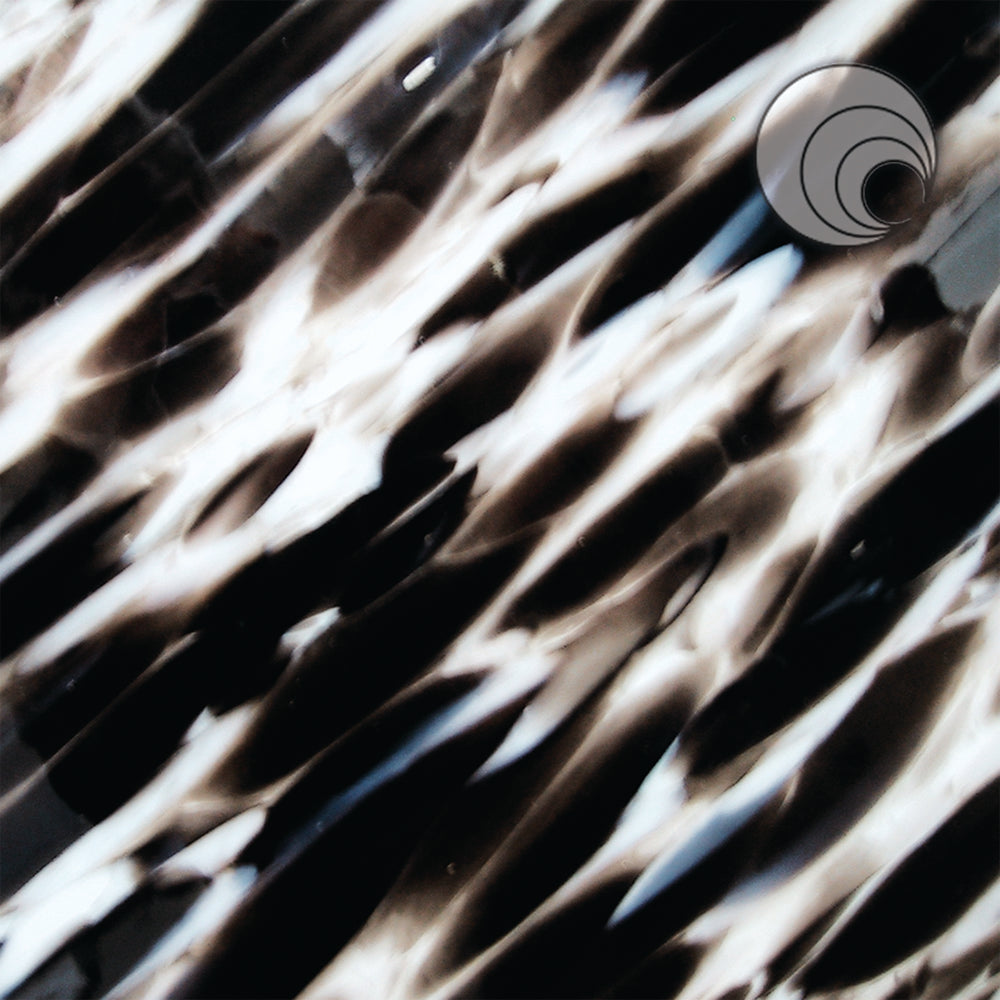 Murano Spirit Fusible features bold comets of black and ivory streaking across a crystal clear base in this popular and versatile Oceanside exclusive.