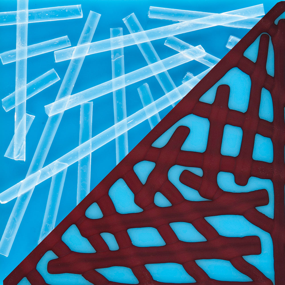 Red Reactive Opal Noodles are glass, linear elements made from a special opal formula that produces a reddish color when fired next to copper bearing glasses.