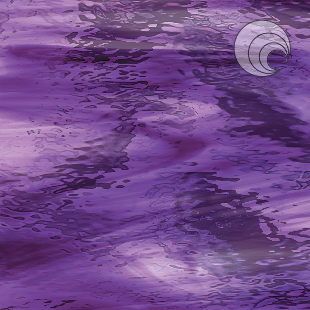 Deep Violet/Pale Purple Waterglass offers contrasting shades of transparent purples entwined throughout the gentle movement of the Waterglass texture. May require a bubble-squeeze for use in fusing.