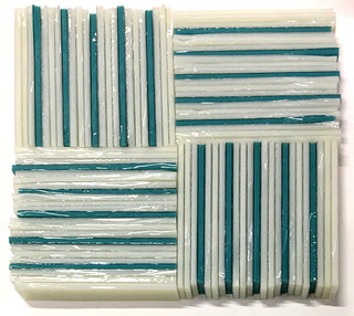 I arrange glass strips on-edge so that I can get really tight lines, lots of color/pattern. For the larger combings, these vertical strips are supported with two strips stacked