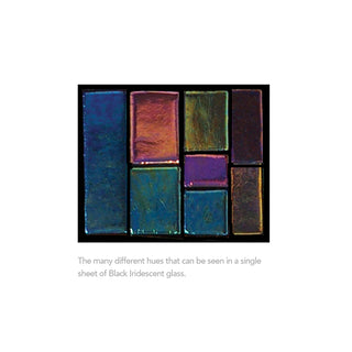 The rainbow iridescence on Clear or White is much more subtle and delicate than on darker colors or Black, which is the most dramatic. See photo at right illustrating how sections of Iridescent Black can be used as separate colors in a piece.)