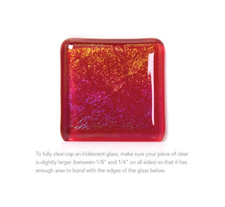 To fully clear-cap an Iridescent glass, make sure your piece of clear is slightly larger (between 1/8" and 1/4" on all sides) so that it has enough area to bond with the edges of the glass below it.